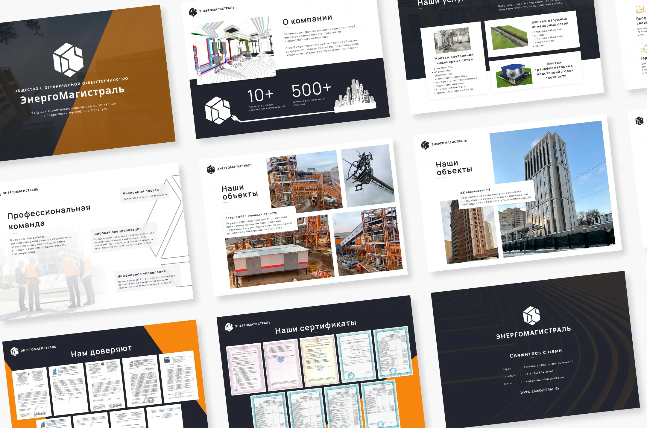 Для партнеров, крупных клиентов и тендеров. Формируют надежный и экспертный образ. Акцент на истории, достижениях, кейсах и команде.